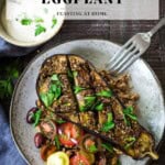 This eggplant recipe is one of my favorite healthy meals! The secret to the best roasted eggplant is to crosshatch it. Crosshatching the eggplant renders it beautifully tender, allowing the marinade’s flavor to penetrate. Za’atar gives this baked eggplant a beautiful Middle Eastern flavor that pairs well with our tahini yogurt sauce. Serve as a veggie side dish or turn it into a vegetarian meal.