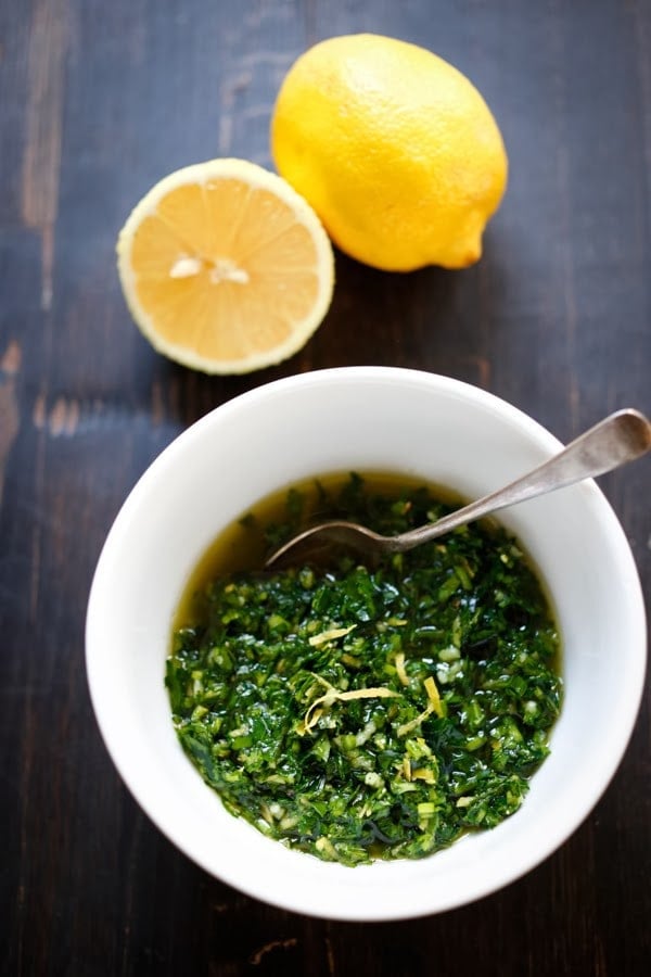 Italian parsley is the base of gremolata…. but sometimes I’ll add fresh mint, basil or even cilantro.