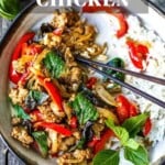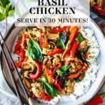 This easy Thai Basil Chicken Recipe is simple, fast, and oh-so-flavorful! Perfect for busy weeknight dinners and ready to serve in under 30 minutes. Video.