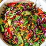 - Veggies: Shredded carrots, shredded cabbage, red bell peppers, English cucumber, snow peas, radishes, jicama, or red onion. Use you favorites and mix and match. Crunchy veggies work best for this salad!